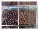 Chokladdoppade frukter och nötter t.ex. ingefära, fikon, körsbär, mandel med vit choklad och kanel, hasselnöt med kaffesmak och chokladdoppade jordgubbar.